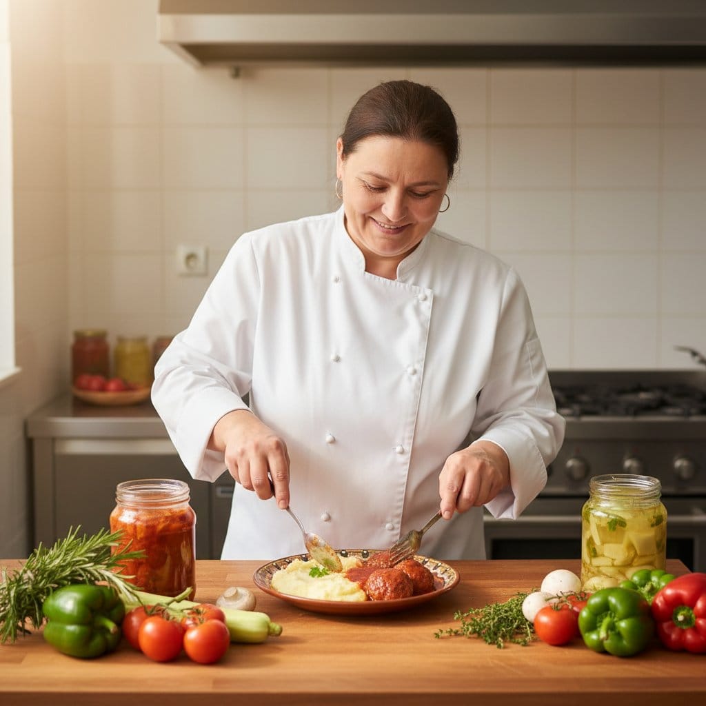 Gatim mancare romaneasca simpla si gustoasa, dupa retete clasice care ne aduce aminte de gustul copilariei : supa de pui cu galuste, chiftelute marinate, mancare de mazare, ciulama de pui, prajitura negresa, crema de zahar ars …